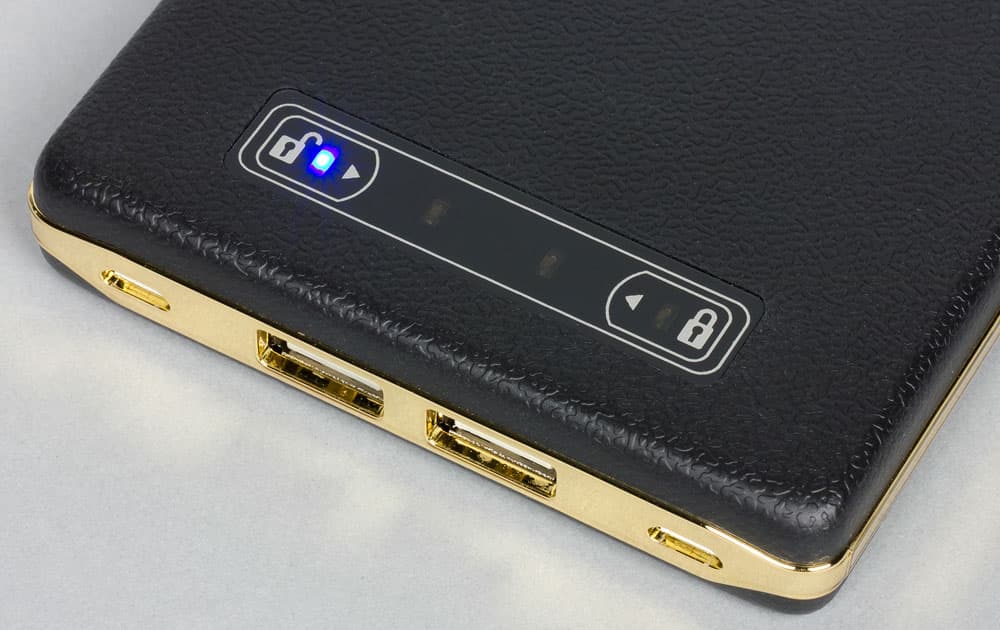 Но, конечно, есть и обычный USB-выход, расположенный на одном из коротких торцов. Рядом с ним вход Micro-USB для зарядки встроенной батареи и круглая кнопка, нажатие на которую подключает выходы и задействует индикаторы для контроля остатка заряда.