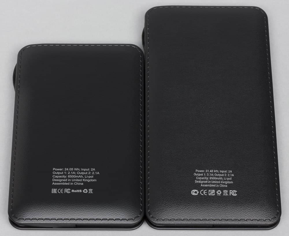 Устройства поставляются в небольших картонных коробочках, подобных той, что мы видели у XPX6500, но гораздо более тонких. И здесь уже значок, обозначающий наличие двух USB-выходов, полностью соответствует действительности. Однако сведения о том, сколько раз можно зарядить разного рода гаджеты от полностью заряженного внешнего аккумулятора, также грешат заниженными данными для потребления.