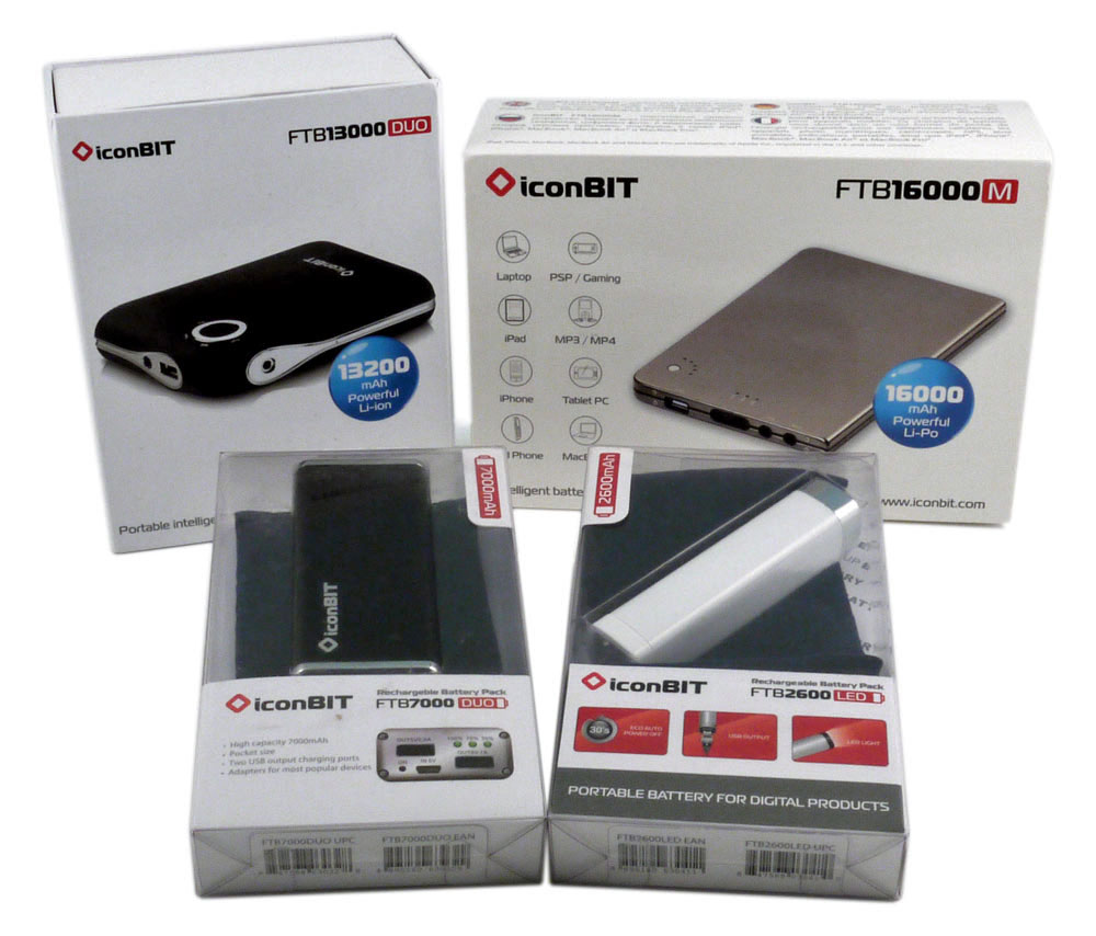 На этот раз мы тестируем четыре устройства фирмы iconBIT. Функциональное назначение у них одно: это аккумуляторы, предназначенные для питания различных мобильных устройств, а различаются образцы емкостью, выходными токами и напряжениями, да еще комплектацией.