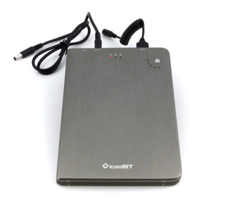 Модель наиболее универсальная, самая богатая по комплектации, но в то же время самая большая, тяжелая и дорогая среди рассмотренных. Она предназначена для подключения широкого спектра нагрузок — помимо перечисленных для iconBIT FTB13000DUO 5- и 12-вольтовых устройств, к FTB16000M можно подключать еще и ноутбуки/нетбуки (включая Apple), требующие питания от 16 или 19 вольт при достаточно больших токах. Соответственно, больше и емкость встроенного аккумулятора.