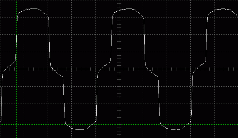 При постепенном понижении входного напряжения, ИБП начинает первую ступень преобразования напряжения при достижении 197 В (в этот момент на нагрузку приходит напряжение 224 В); начинаем повышение входного напряжения и определяем, что преобразование прекращается при 205 В, в этот момент напряжение, приходящее на нагрузку — 205 В.