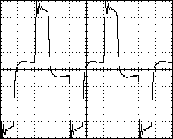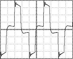 До изучения формы напряжения была проведена калибровка щупов, эталонный сигнал — 1 КГц, 1 Vp-p, форма — меандр: