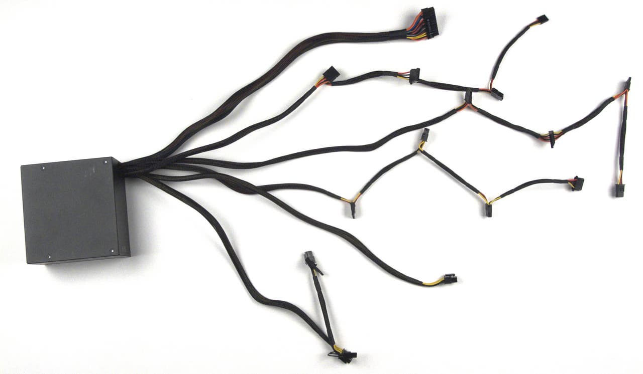 Длина проводов является достаточной для комфортного использования в корпусах типоразмера full tower и более габаритных с верхним расположением блока питания. В корпусах высотой до 55 см с нижнерасположенным блоком питания длина проводов также должна быть достаточной: до коннектора питания процессора — около 57 см. Таким образом, с большинством современных корпусов проблем быть не должно. Но в случае использования очень габаритных корпусов типоразмера full tower (и более) длина проводов до коннектора питания процессора может оказаться недостаточной.