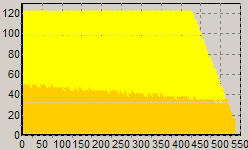 Кратко опишем дополнительные тесты. На квадратный ящик из ДСП, обитый пенополиэтиленом, укладывается блок питания таким образом, чтобы ни входу, ни выходу воздуха при работе системы охлаждения блока питания ничто не препятствовало. Вплотную к ящику устанавливается трехногий штатив, причем за счет конструкции последнего взаимное расположение ящика и штатива осуществляется с минимальной погрешностью. Измерительный микрофон устанавливается на штатив таким образом, чтобы он располагался над блоком питания со стороны одного из углов тыльной стенки БП. Установочное расстояние порядка 0,03 метра. Выходная мощность составляет 30 Вт, время работы до измерения — 5 минут. После первичного измерения уровня шума с вращающимся вентилятором производится измерение уровня шума с остановленным вентилятором (вентилятор при этом блокируется пластиковой стяжкой).