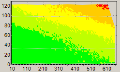 По результатам теста выставляется оценка за качество электропитания, как на полуплоскости в целом, так и в наиболее актуальном рабочем диапазоне, за который мы приняли прямоугольник левый нижний угол которого имеет координаты (50;40), а верхний правый угол координаты (200;60). Данный диапазон представляется наиболее актуальным для домашнего пользователя.
