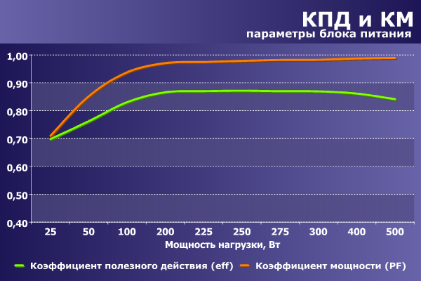Для современного блока питания полученное значение является вполне достойным показателем.