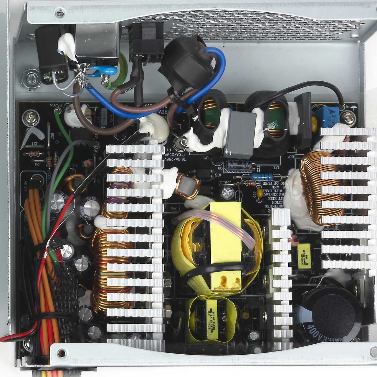 В данном случае уровень шума электроники минимален, основную лепту в общий уровень шума блока питания вносит работающий вентилятор.