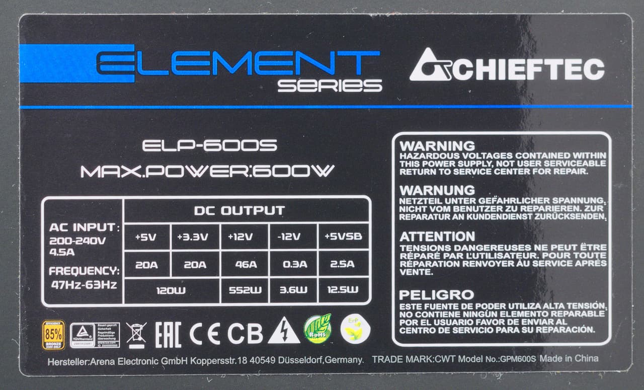 Очередной продукт компании Chieftec, с которым мы познакомимся сегодня, относится к серии Element — это новая серия, которая предназначена для развивающихся рынков. В частности, его можно встретить в продаже в странах Восточной Европы, на Украине и в России. Модель предназначения для использования только в сетях с напряжением 230 В. Ее стоимость составляет около 50 евро, а в РФ ее на момент подготовки статьи можно было купить за 3 с небольшим тысячи рублей.