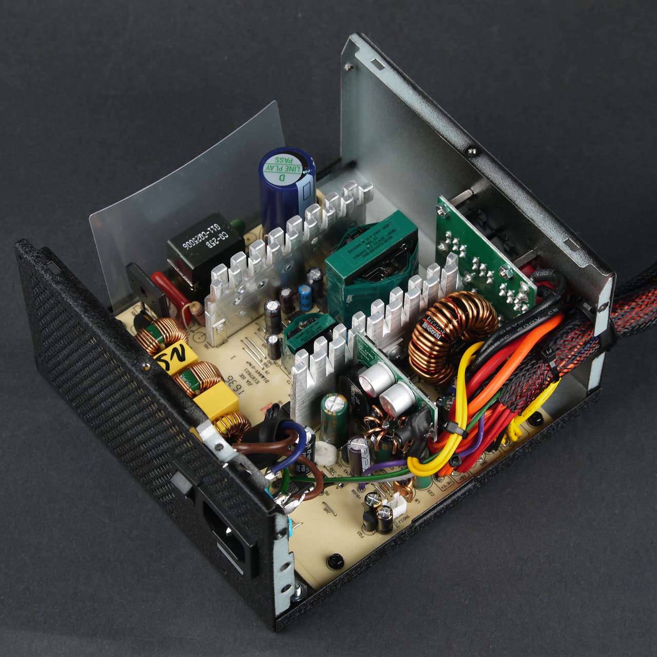 В данном случае уровень шума электроники минимален, основную лепту в общий уровень шума блока питания вносит работающий вентилятор.