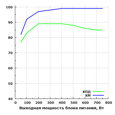 Таким образом, сравнительно высокой экономичностью блок питания может похвастать вплоть до мощности порядка 300 Вт, после чего экономичность снижается, а после 500 Вт она уже становится совсем невысокой.