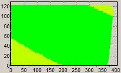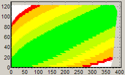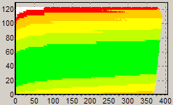 Первым этапом инструментального тестирования является построение кросснагрузочной характеристики (КНХ) и представление ее на полуплоскости, ограниченной максимальной мощностью по шине 3,3&5 В с одной стороны (по оси ординат) и максимальной мощностью по шине 12 В с другой стороны — по оси абсцисс. В каждой точке измеренное значение напряжение обозначается цветовым маркером в зависимости от отклонения от номинального значения.