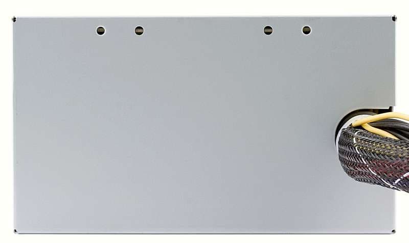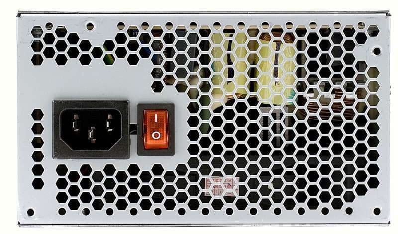 Корпус блока питания выполнен из стали толщиной около 0,6 мм. На внешней стороне корпуса БП расположен выключатель сетевого питания и разъем для подключения сетевого кабеля. Выключатель оснащен индикатором (подсветкой), включающимся при положении выключателя ON(I). Нужно отметить, что подсветка не раздражает и по глазам не бьет за счет хорошего рассеивания света самим переключателем.