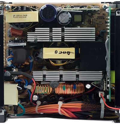Тестируемый блок питания оснащен активной схемой коррекции коэффициента мощности и имеет расширенный диапазон питающих напряжений от 90 до 265 В, так что у владельцев маломощных ИБП могут возникнуть определенные проблемы с эксплуатацией данного блока питания. Во всех остальных случаях наличие APFC и расширенного диапазона питающих напряжений можно считать достоинством.