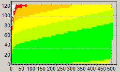 По результатам теста выставляется оценка за качество электропитания, как на полуплоскости в целом, так и в наиболее актуальном рабочем диапазоне, за который мы приняли прямоугольник, левый нижний угол которого имеет координаты (50;40), а верхний правый угол — координаты (200;60). Данный диапазон представляется наиболее актуальным для домашнего пользователя.