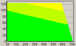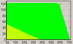 Первым этапом инструментального тестирования является построение кросснагрузочной характеристики (КНХ) и представление ее на полуплоскости, ограниченной максимальной мощностью по шине 3,3&5 В с одной стороны (по оси ординат) и максимальной мощностью по шине 12 В с другой стороны — по оси абсцисс. В каждой точке измеренное значение напряжение обозначается цветовым маркером в зависимости от отклонения от номинального значения.