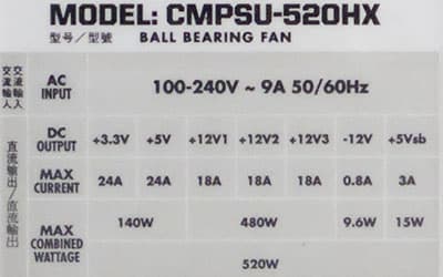 Corsair HX520 (CMPSU-520HX) | 24 | 24 | 18 | 18 | 18 | — | 140 | 480 | 520 |