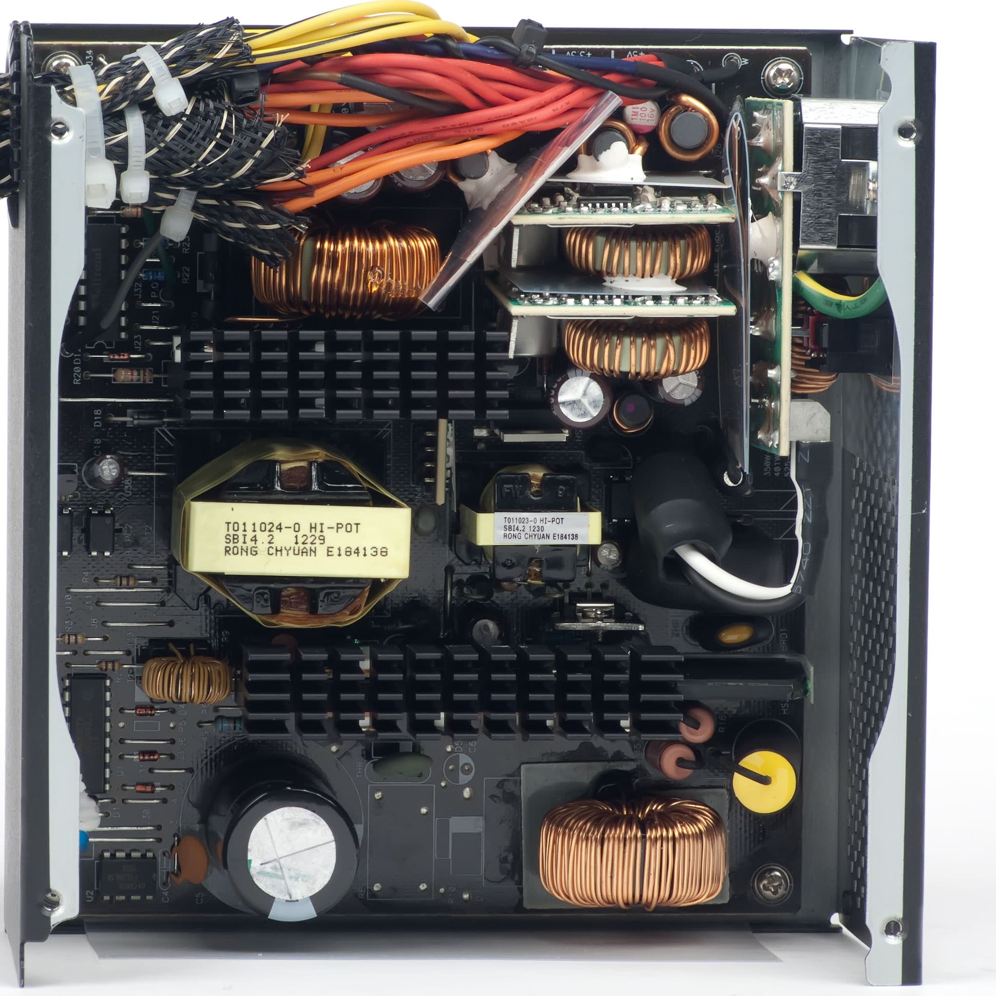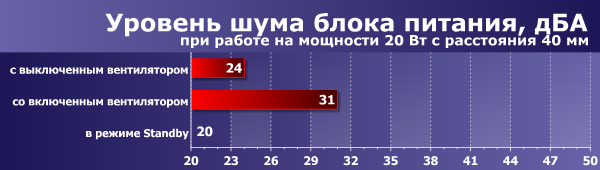 В данном случае уровень шума электроники минимален, основную лепту в общий уровень шума блока питания вносит работающий вентилятор.