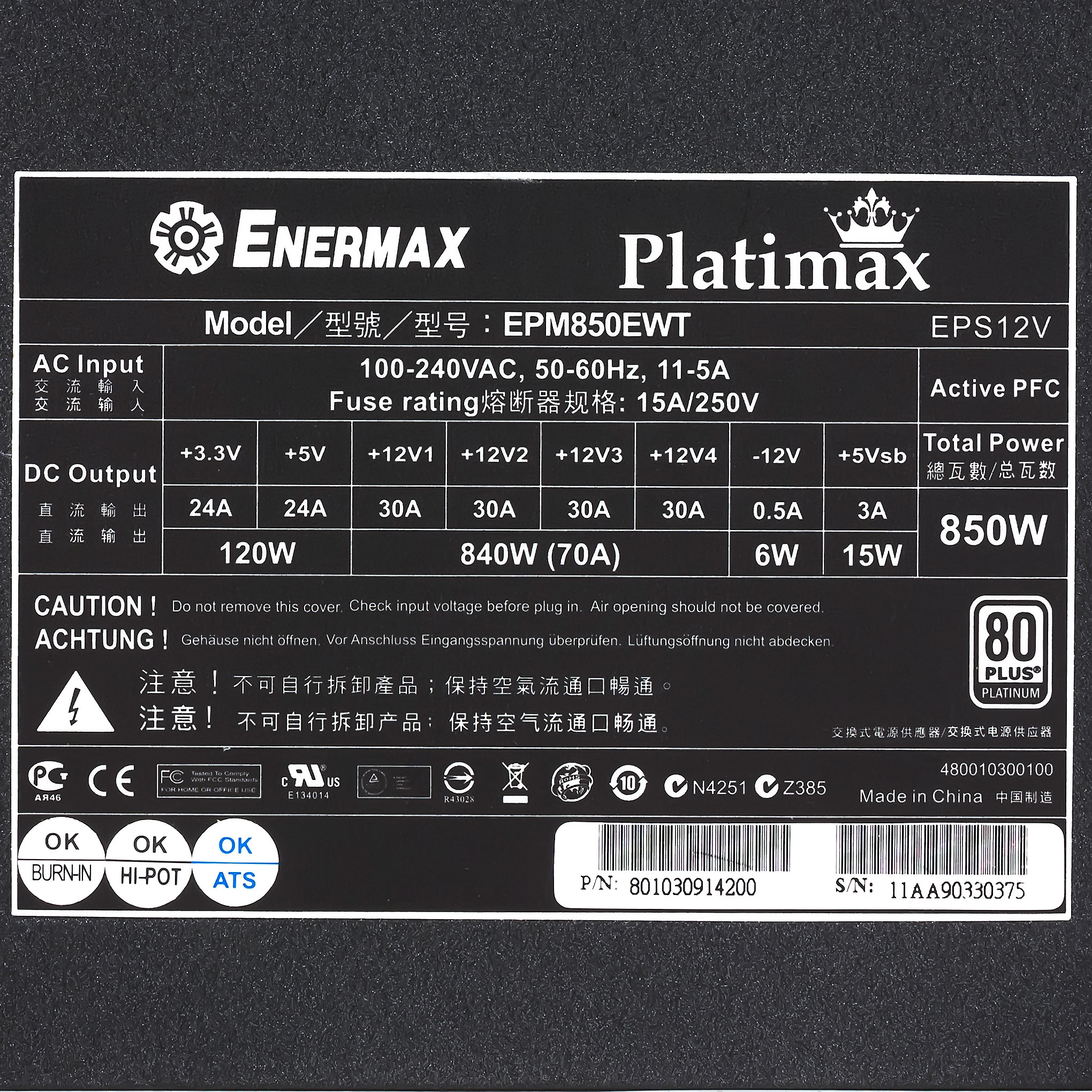 Серия Platimax является топовой в производственной гамме компании Enermax и включает семь моделей мощностью от 500 до 1500 Вт. Все представители серии характеризуются эксплуатационным диапазоном температуры от 0 до 50 градусов, наличием сертификата 80Plus Platinum, а также использованием высококачественных японских конденсаторов.