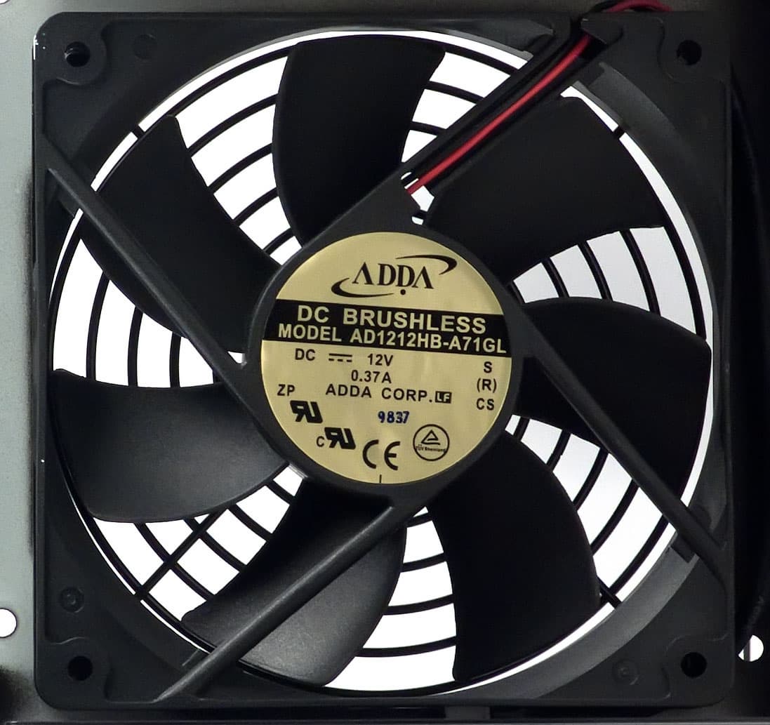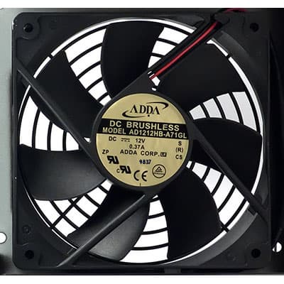 Под проволочной решеткой установлен вентилятор AD1212HB-A71GL типоразмера 120 мм производства ADDA Corporation, вентилятор основан на подшипнике качения.