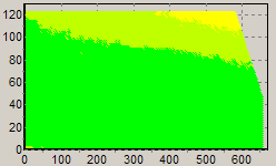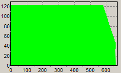 Первым этапом инструментального тестирования является построение кросснагрузочной характеристики (КНХ) и представление ее на полуплоскости, ограниченной максимальной мощностью по шине 3,3&5V с одной стороны (по оси ординат) и максимальной мощностью по шине 12V с другой стороны — по оси абсцисс. В каждой точке измеренное значение напряжения обозначается цветовым маркером в зависимости от отклонения от номинального значения.