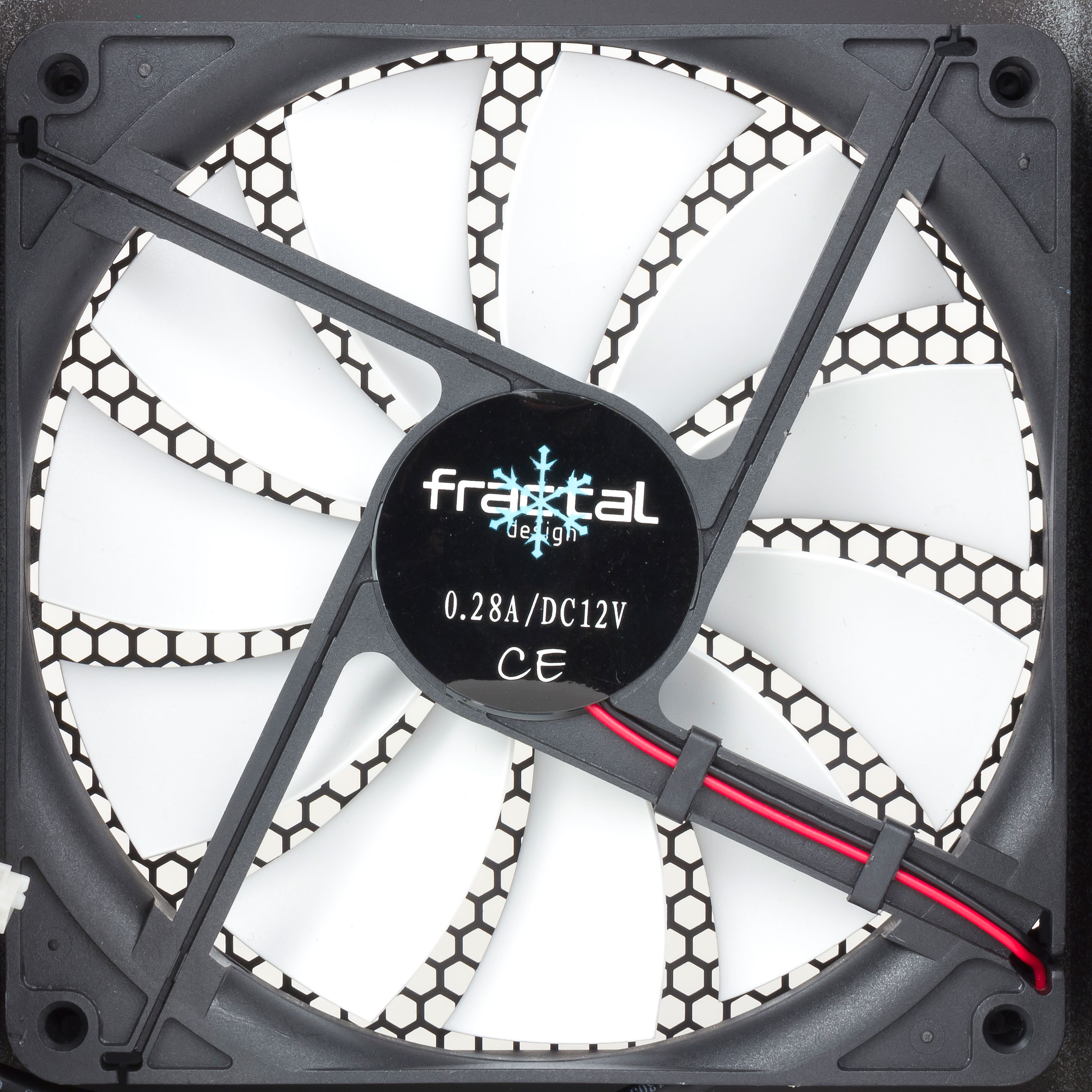 Под штампованной решеткой установлен вентилятор типоразмера 120 мм с собственной маркировкой Fractal Design.