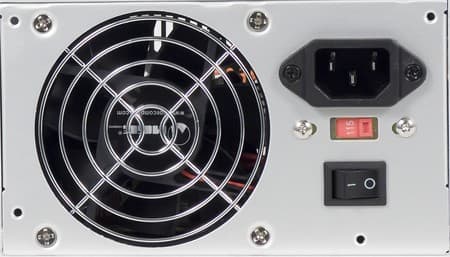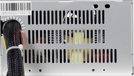 Данный БП очень похож на описанный нами выше, однако и отличий в нем тоже достаточно. Материалом корпуса служит привычная сталь. Единственным отличием в системе вентиляции можно считать чуть меньшее количество вентиляционных отверстий на противоположной вентилятору стенке и полное их отсутствие на боковой стенке.