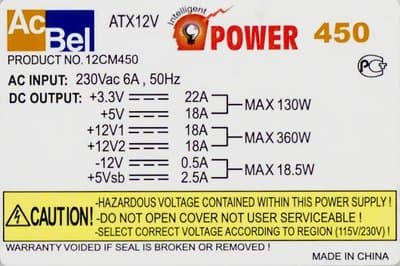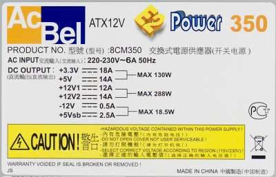 Сравнив указанные значения с типовыми блоками питания из Power Supply Design Guide for Desktop Platform, отметим, что данный БП по заявленной мощности шины 12V находится между 350 Вт и 400 Вт типовыми БП, что уже неплохо для начала.