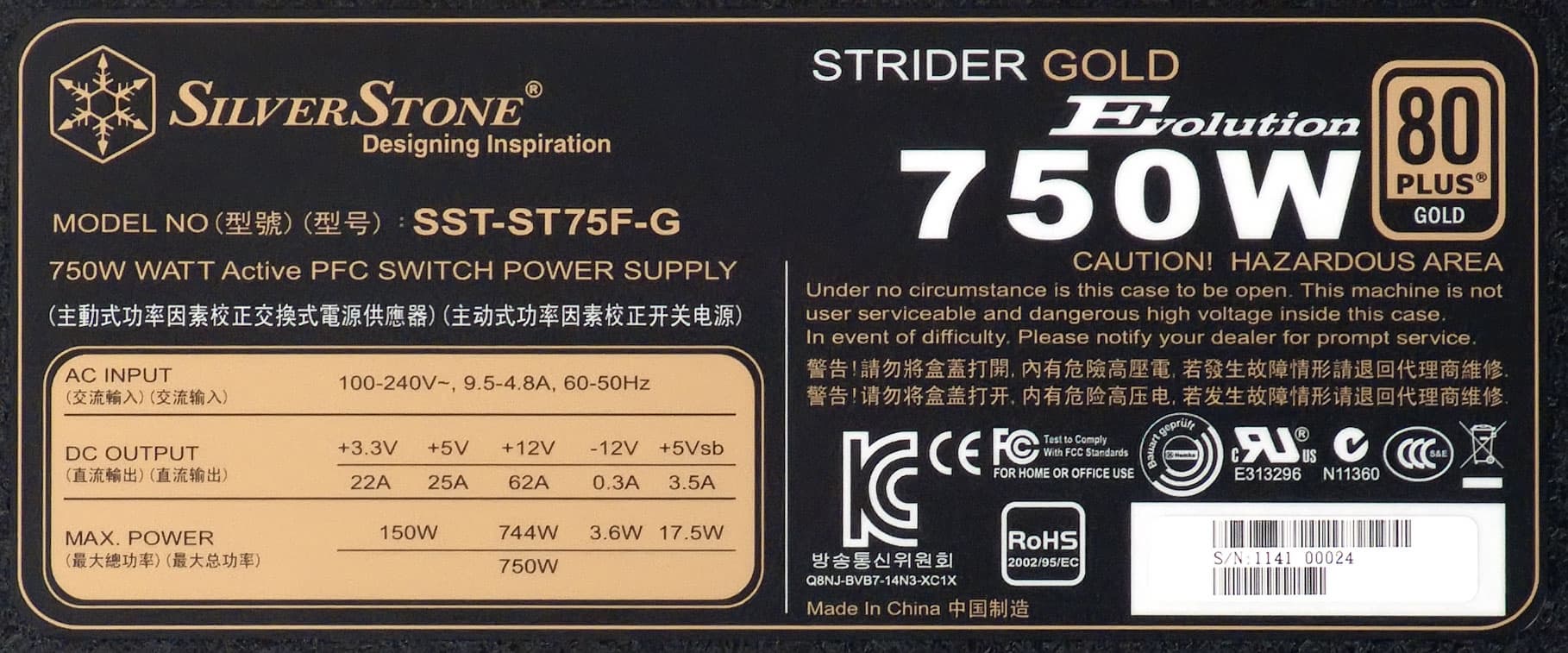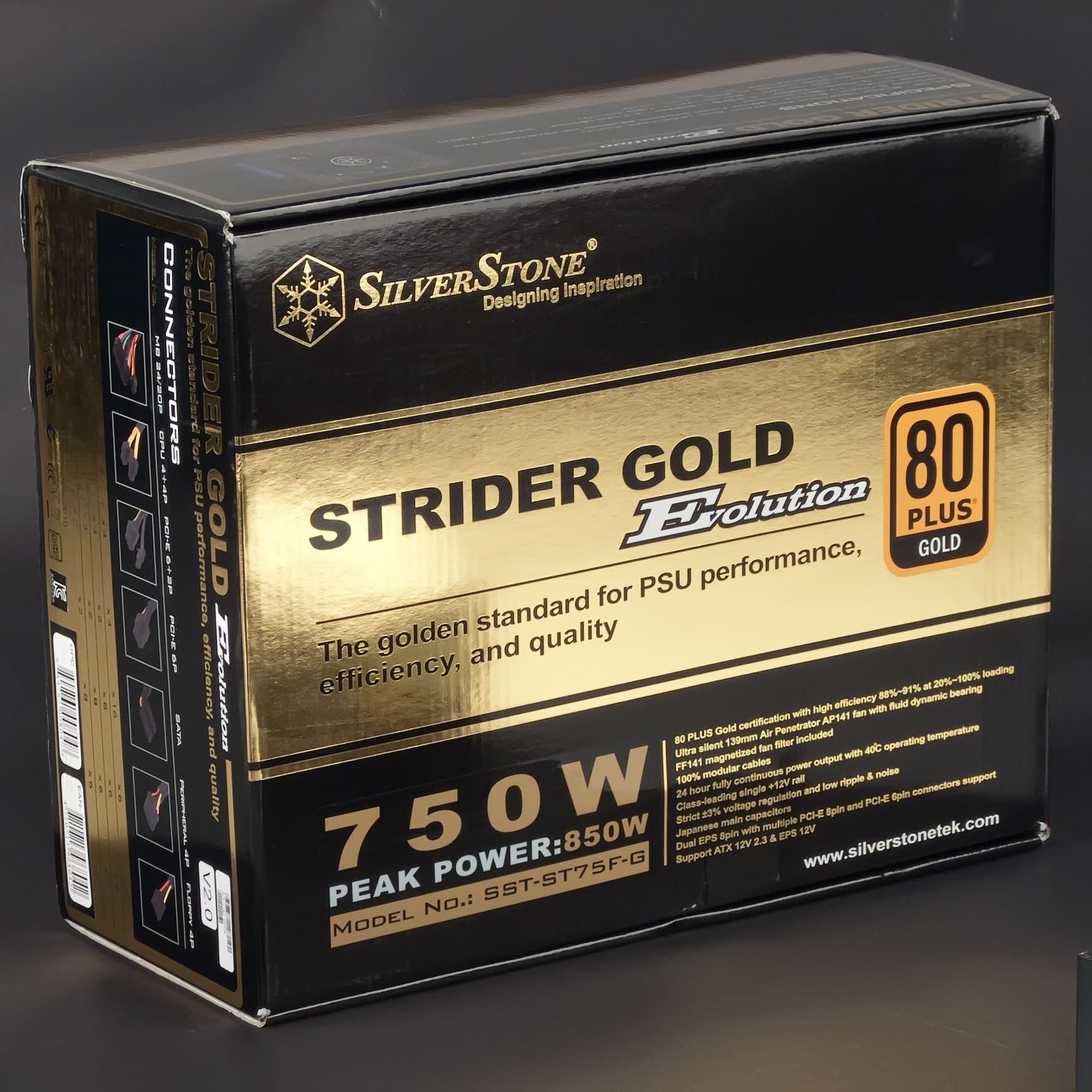 Ассортимент блоков питания включает пять серий с различным позиционированием. В топовой серии Strider Gold Evolution представлены четыре модели мощностью от 750 до 1200 Вт, мы познакомимся с младшей из них.