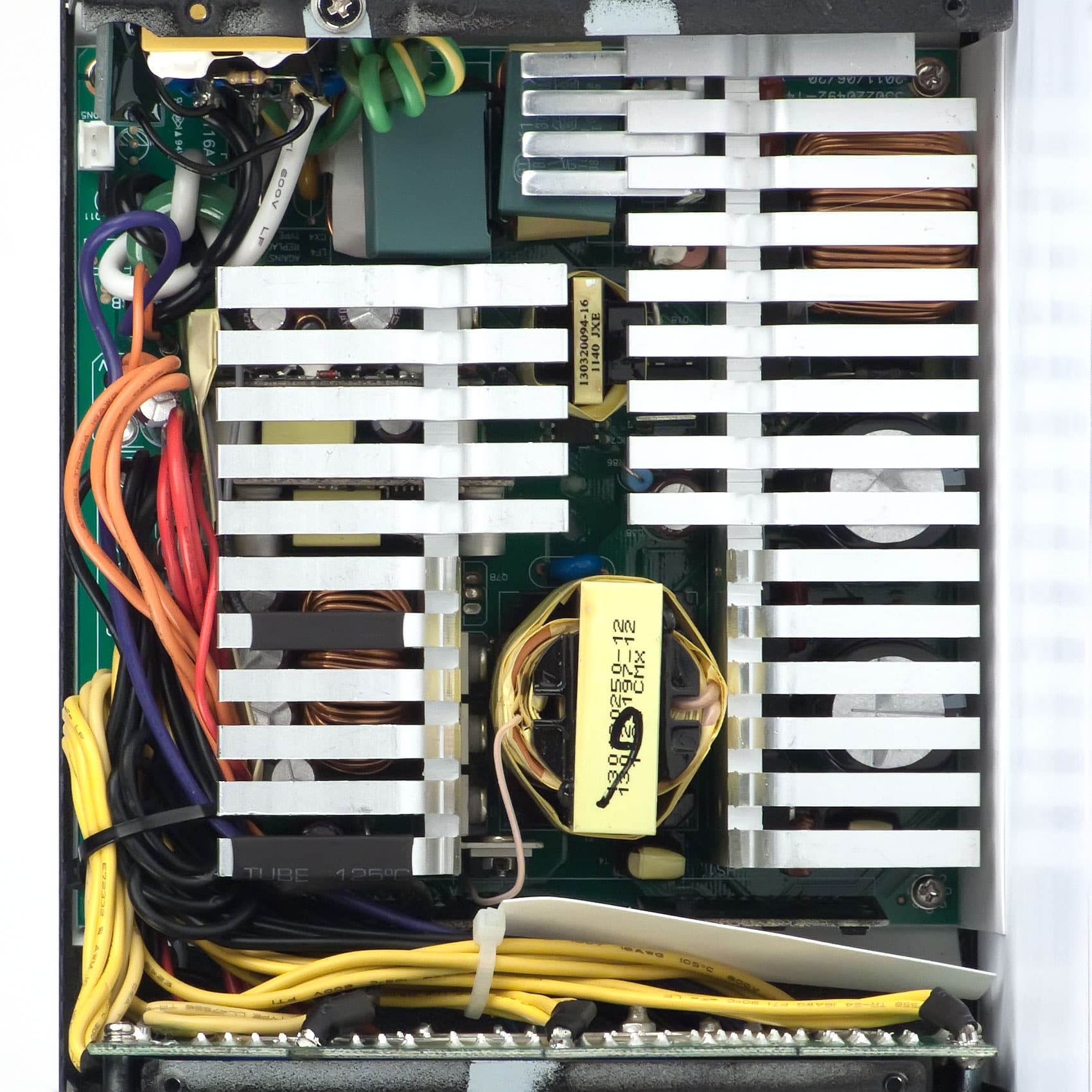 В данном случае уровень шума электроники минимален, основную лепту в общий уровень шума блока питания вносит работающий вентилятор.