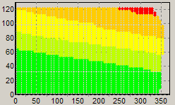 По результатам теста, выставляется оценка за качество электропитания, как на полуплоскости в целом, так и в наиболее актуальном рабочем диапазоне, за который мы приняли прямоугольник, левый нижний угол которого имеет координаты (50;40), а верхний правый угол — координаты (200;60). Данный диапазон представляется наиболее актуальным для домашнего пользователя.