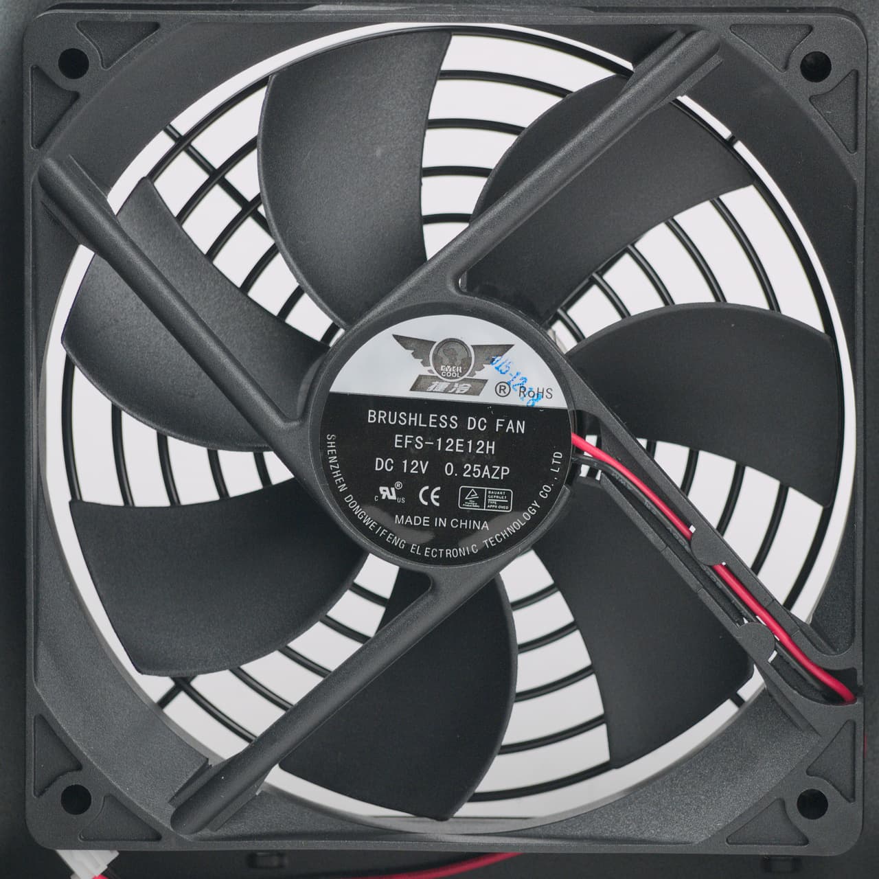В блоке питания установлен вентилятор EFS-12E12H типоразмера 120 мм производства компании Shenzhen Dongweifeng ElectronicTehnology, сайт данной компании обнаружить не удалось.