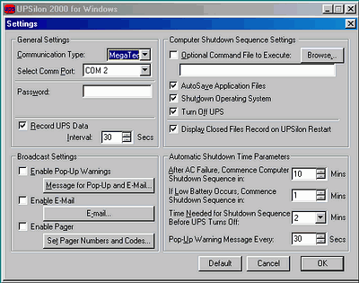Поставляемое с ИБП ПО — разработка тайваньской компании Megatec, UPSilon 2000 версии 3.00.20903 (для Windows), 2.1 для Linux kernel 2.x, FreeBSD 2.x, 3.x, Netware 3.1, 4.x, 5.x.