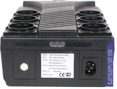 На верхней панели Smart Station RX500S расположены кнопка включения устройства, шесть розеток (три — только с защитой от скачков напряжения, три — «заведенные» на аккумулятор), четыре светодиода, идентифицирующие режимы работы устройства (сверху вниз):