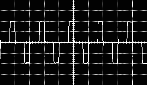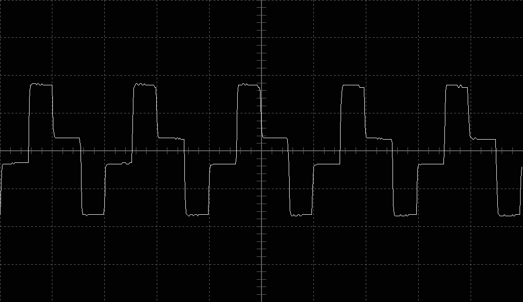 | Осциллограмма выходного напряжения | Ступенчатая аппроксимация синусоиды при работе от батарей и синусоида при работе от сети |
