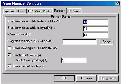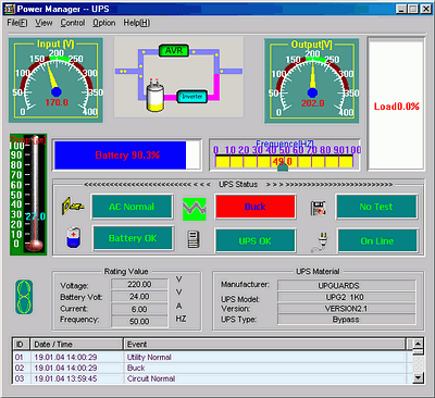 Поставляемое с ИБП ПО — разработка китайской компании Richcomm, Power Manager версии 1.0, для всех версий Windows и для Linux. Несмотря на то, что в предоставленном варианте пока отсутствует русскоязычная часть (предлагается выбор между китаизированной и английской версиями), насколько нам известно, работа над локализацией ведется. Впрочем, даже те, кто не совсем уверен в своих знаниях английского, смогут разобраться с программой — все достаточно наглядно.