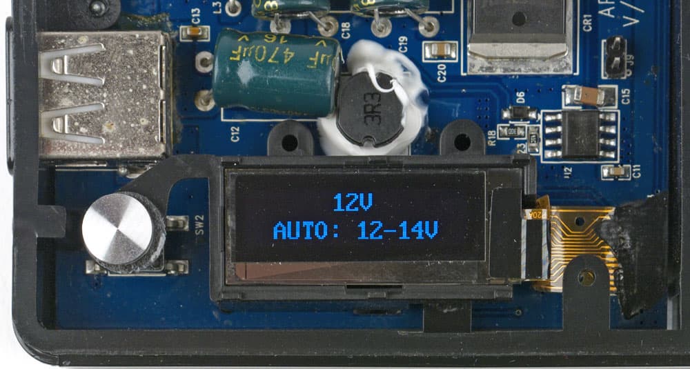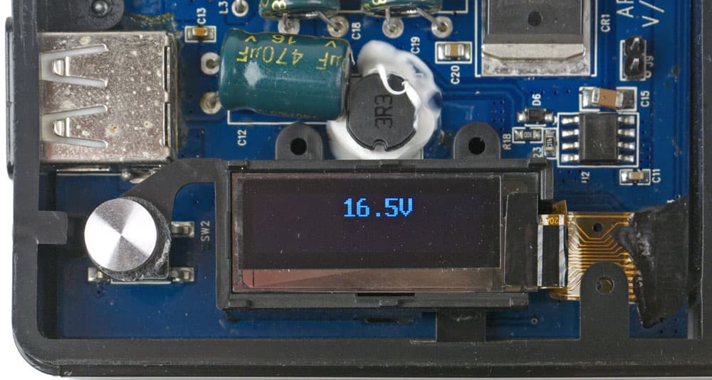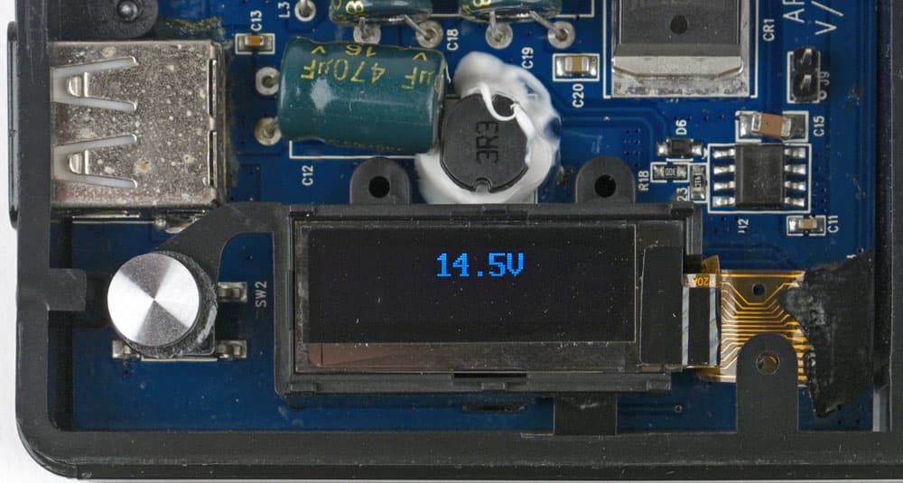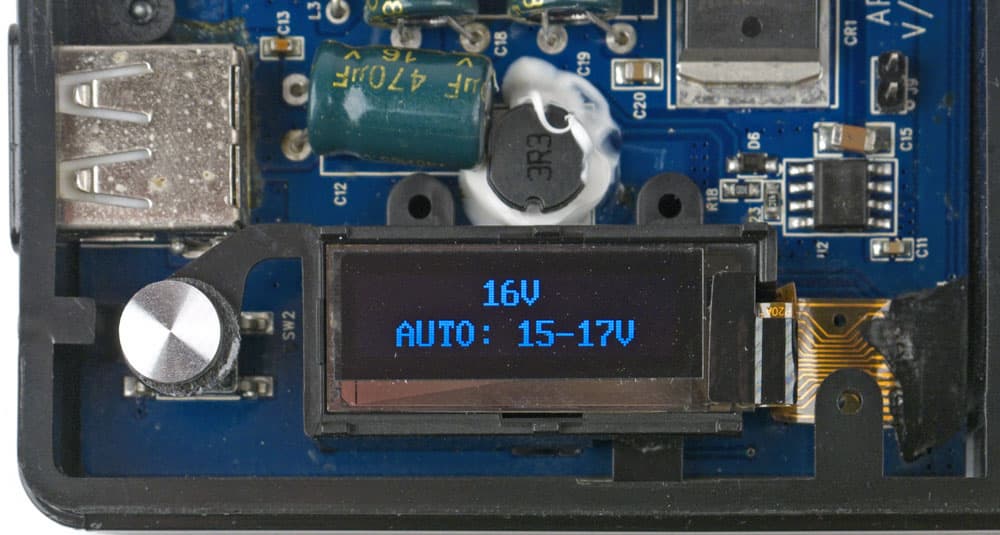 Надо еще сказать, что при выключении кнопкой устройство не запоминает текущую установку для «Out», и выходное напряжение приходится задавать каждый раз после включения, начиная с 12 В. Торопиться при этом не надо: если быстро нажимать на кнопку, то очень легко проскочить нужное значение.