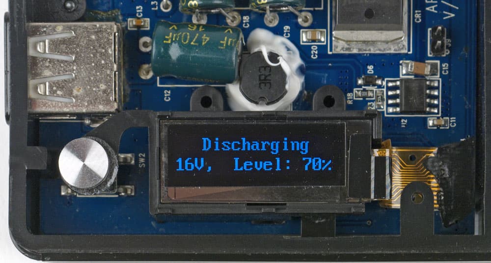 Управление батареей тоже от единственной кнопки. Но кнопка лишь подключает выход, а отключить ею батарею нельзя: это происходит только автоматически, когда нагрузка отсутствует в течение 20 секунд.