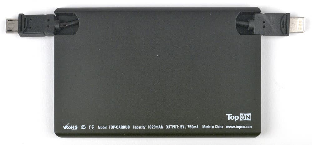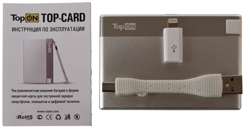 Вообще-то есть еще переходник (уже не гибкий) с Micro-USB на Lightning, но при сравнении с Top-Carduo его учитывать не приходится: дело в том, что выход у Top-Card всего один, и тоже в виде выходящего кабеля с коннектором Micro-USB.