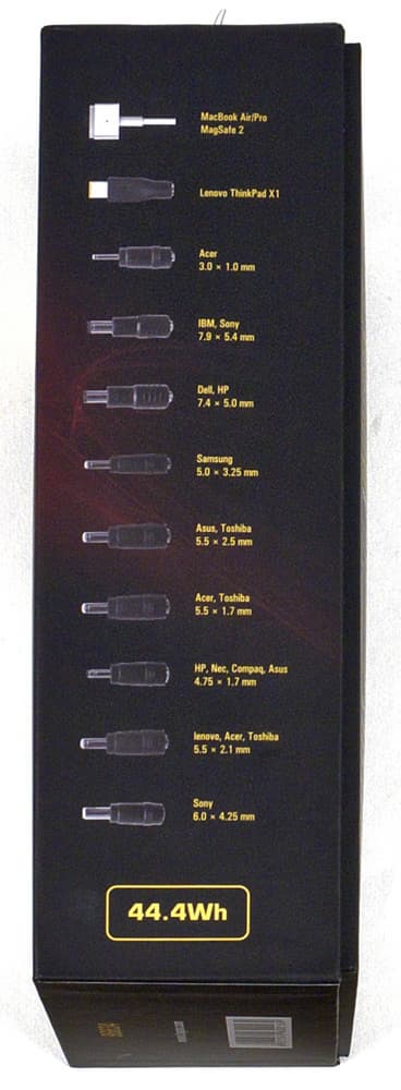 Еще раз напомним: перед покупкой лучше убедиться, что в комплекте есть переходник, соответствующий вашей модели ноутбука, причем лучше всего проверить с подключением ноутбука к выходу батареи.