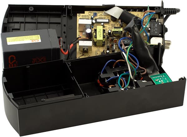 Тестируемый ИБП относится к классу Offline и не оснащен системой AVR — автоматическим регулятором напряжения, иногда называемого стабилизатором, который позволяет корректировать (повышать или понижать) входное напряжение, получаемое из электросети, не переходя на питание от батарей.