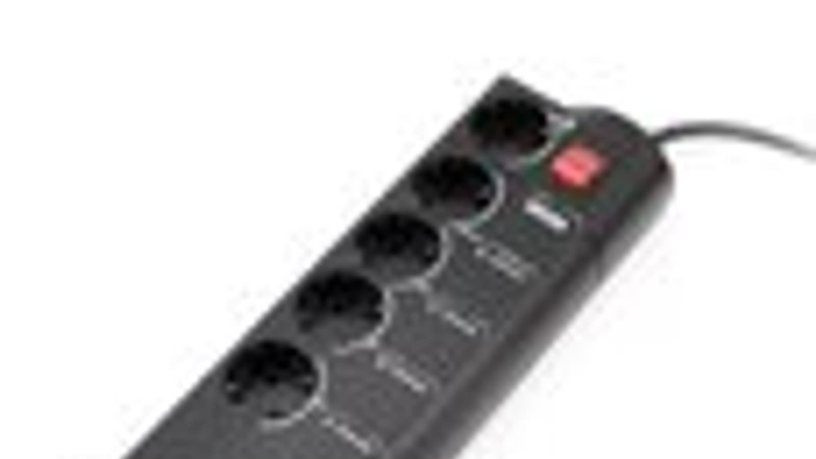 С виду это обычный фильтр-удлинитель с шестью розетками и выключателем, но при внимательном осмотре обнаруживается розетка под LAN-интерфейс. Собственно, и в этом нет ничего необычного — встречаются фильтры, которые защищают еще и коммуникационные линии; но тогда таких розеток должно быть минимум две (вход и выход).