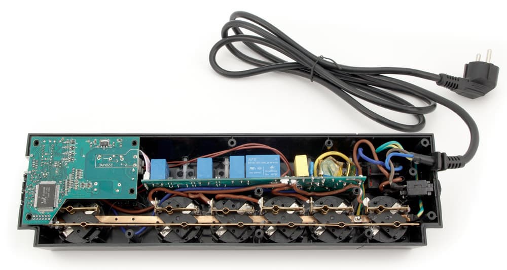На силовой плате находятся входные элементы защиты от помех и цепи управления программируемыми розетками.