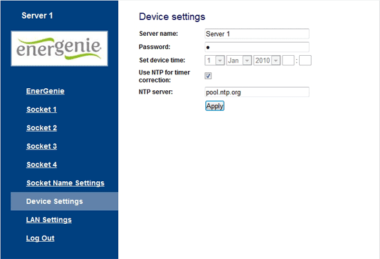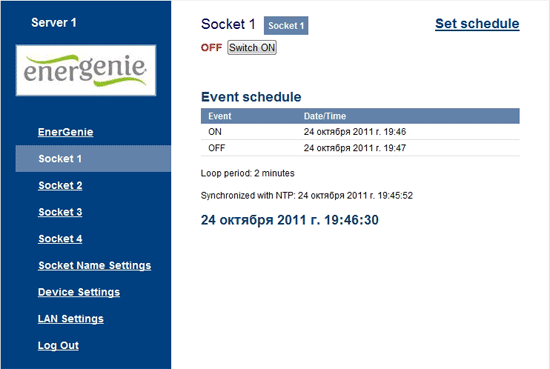 Не пугайтесь, когда после ручного задания даты/времени и нажатия «Apply» показания в строке «Set device time» сбросятся — время задано нормально, и это можно проверить, перейдя, например, на закладку Socket 1: