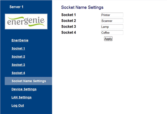 а также задать какие-то понятные имена программируемым розеткам фильтра на закладке «Socket Name Settings» (не более 11 символов, кириллица и некоторые символы не поддерживаются):