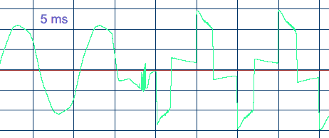 Время переключения ИБП на питание от батареи определялось по осциллограмме, и составило 4 ms.