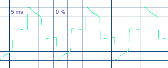 Вид и качество формируемого сигнала при разной нагрузке хорошо видно на осциллограмме.
