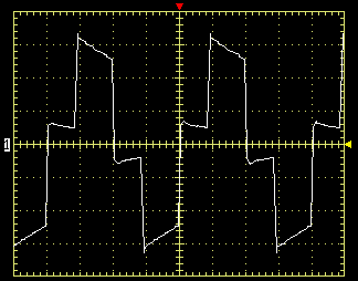Качество выходного сигнала при разной нагрузке при работе от батарей хорошо видно на осциллограммах: