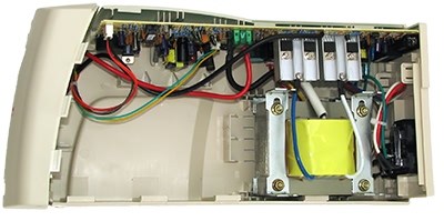Далее можно отвернуть два шурупа на задней стенке и сдвинув назад правую половинку корпуса полностью открыть ИБП. Внутренний дизайн традиционен, все на своих местах (пустое место слева внизу занято АКБ).