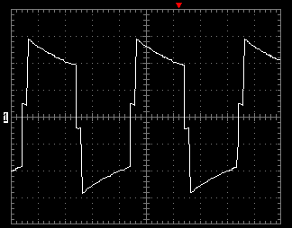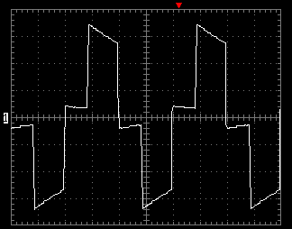 Для ориентировки отмечу, что использовавшегося в данном случае аккумулятора хватает, чтобы 4-5 раз подкачать воду в гидроаккумулятор (около 3 мин работы 500-ваттного насоса, затем перерыв в несколько часов). При старте асинхронного двигателя устройство издает предупредительный сигнал, но перегрузку выдерживает, как обещано. Качество выходного сигнала при разной нагрузке, при работе от батарей, хорошо видно на осциллограммах: