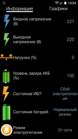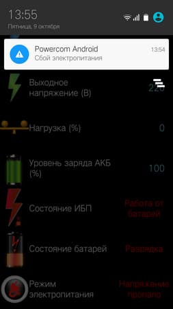 При потере напряжения во внешней сети приложение выводит соответсвующее оповещение, которое сопровождается звуковым сигналом. В целом новое приложение Powercom нам понравилось, и огорчает лишь невозможность подключения и работы сразу с несколькими ИБП, а также малое количество настроек. Скорее всего, в будущих версиях этого ПО все ошибки и недочеты будут исправлены, а само приложение появится не только в магазине приложений Google, но и у Microsoft и Apple.